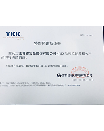 YKK正式授權經銷商-玉林市寶晨服飾有限公司