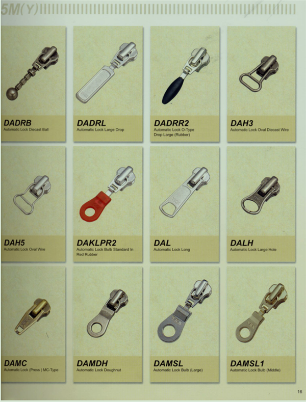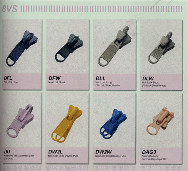 YKK樹脂牙拉鏈及拉頭、YKK金屬牙拉鏈及拉頭、YKK Y牙牛仔系列拉鏈等。